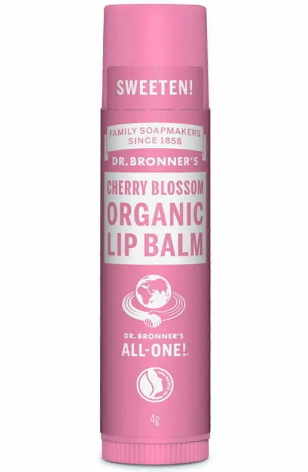 Dr. Bronner’s Cherry Blossom Organic Lip Balm bevat een combinatie van biologisch gecertificeerde avocado-, jojoba- en hennepoliën met de beste biologische bijenwas om gespannen, gesprongen lippen om te zetten in frisse lippen.