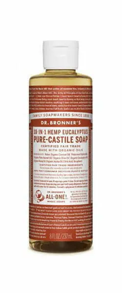 Dr Bronner Magic Soap Eucalyptus 240ml Dr. Bronners is wereldwijd bekend om zijn eenvoudige, pure formules van plantaardige zepen. Biologisch en Fair Trade, Natuurlijke Cosmetica, 18-in-1 gebruikswijzen, volledig biologisch afbreekbaar en plantaardig.