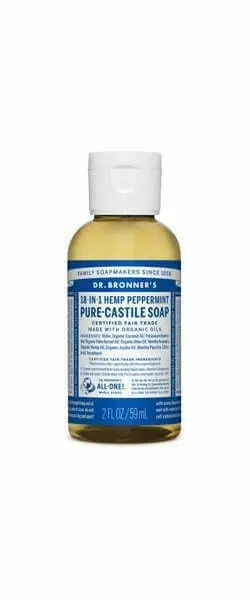 Dr Bronner Magic Soap Pepermunt 60ml Dr. Bronners is wereldwijd bekend om zijn eenvoudige, pure formules van plantaardige zepen. Biologisch en Fair Trade, Natuurlijke Cosmetica, 18-in-1 gebruikswijzen, volledig biologisch afbreekbaar en plantaardig.
