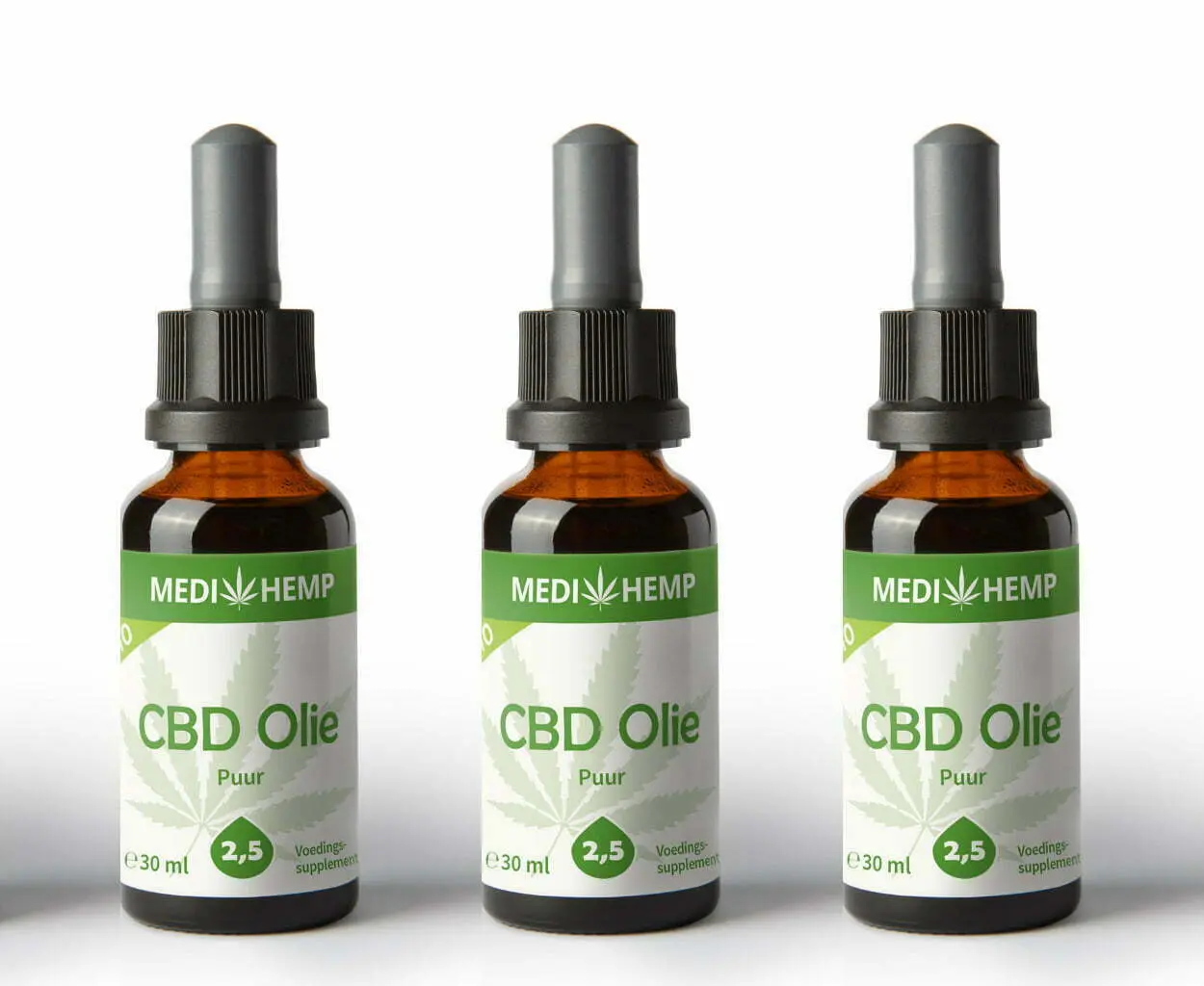 Natuurlijke CBD olie met korting voordeelpakket MediHemp CBD Olie Puur 2,5% CBD 3x 30ml