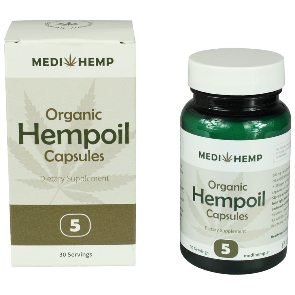 Vorteilspackung mit 5 Gläsern MediHemp CBD Öl Rohkapseln CO2 Extraktion 5% CBD a 60 Stück. Die Kapseln von Medihemp sind erneuert worden! Seit November 2021 in einer neuen kleineren Verpackung mit 60 kleinen Kapseln anstelle von 30 großen Kapseln. Die kleineren CBD-Kapseln sind einfacher zu nehmen. Die Dosierung wurde von 1 Kapsel auf 2 Kapseln auf einmal angepasst. Die Anzahl der Milligramm des CBD-Extrakts wurde leicht erhöht. Für die 5 % sind dies nun ~27 mg pro 2 kleine Kapseln, statt wie bisher 25 mg in 1 großen Kapsel.