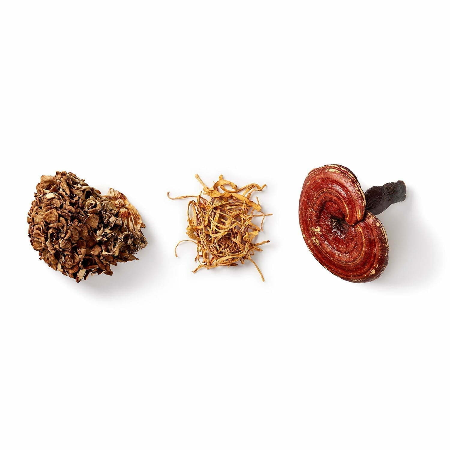 organic Reishi mushroom spores (Ganoderma lucidum), organic Cordyceps (Cordyceps sinensis) biomass, organic Maitake (Grifola frondosa) biomass, vegetarian cellulose capsule (Hydroxypropylmethylcellulose)*