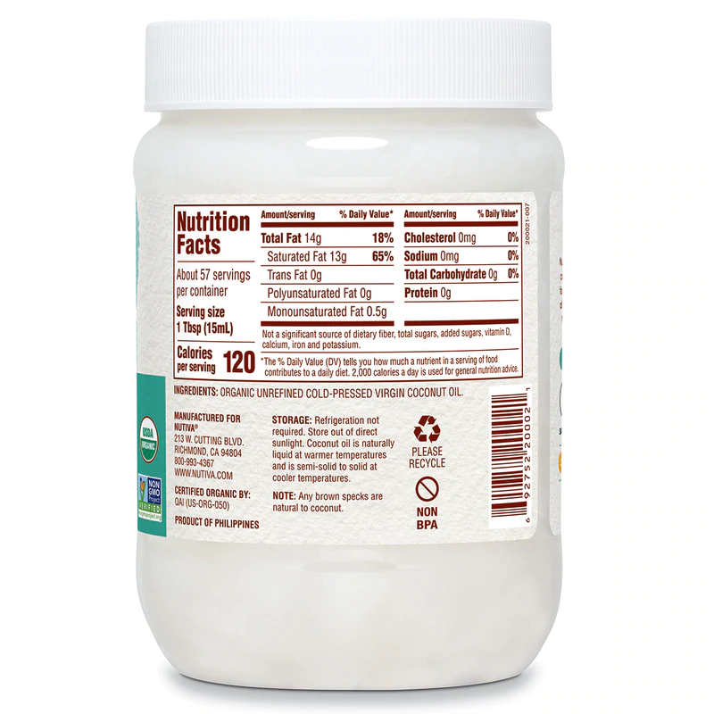 Note! There is no difference between Virgin and extra-Virgin Coconut Oil. Nutiva previously used the term “extra virgin” to emphasize their commitment to quality. However, as a global leader in coconut oil, Nutiva is committed to complying with global regulations that do not allow the term “extra virgin” on the coconut oil product. When you see the term “virgin” on the packaging, you can rest assured that it is still of the highest quality and nothing has changed.