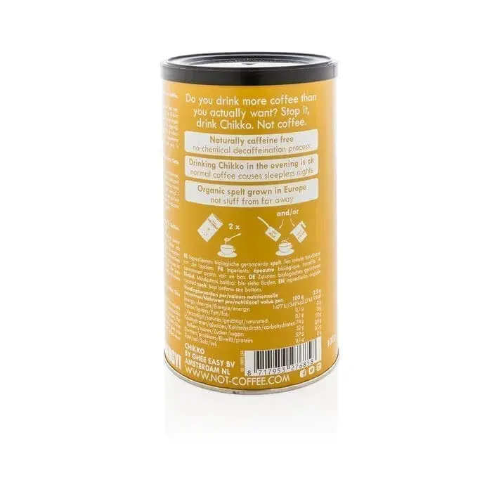 Chikko Not Coffee Spelt is de perfecte keuze als koffie-alternatief voor wie zoekt naar een nieuwe smaakervaring. Spelt is een oude tarwesoort die bekend staat om zijn unieke en delicate smaak, en als koffie biedt het een rijke, volle en zachte smaak die zeker zal bevallen. Bovendien is spelt koffie een goede keuze voor mensen die op zoek zijn naar een alternatief voor gewone koffie. Of je nu een nieuwe ochtendroutine wilt uitproberen of gewoon experimenteren met nieuwe smaken, spelt koffie is een uitstekende keuze voor elke liefhebber van reguliere koffie. Proef de verfijnde smaak van spelt koffie vandaag nog!