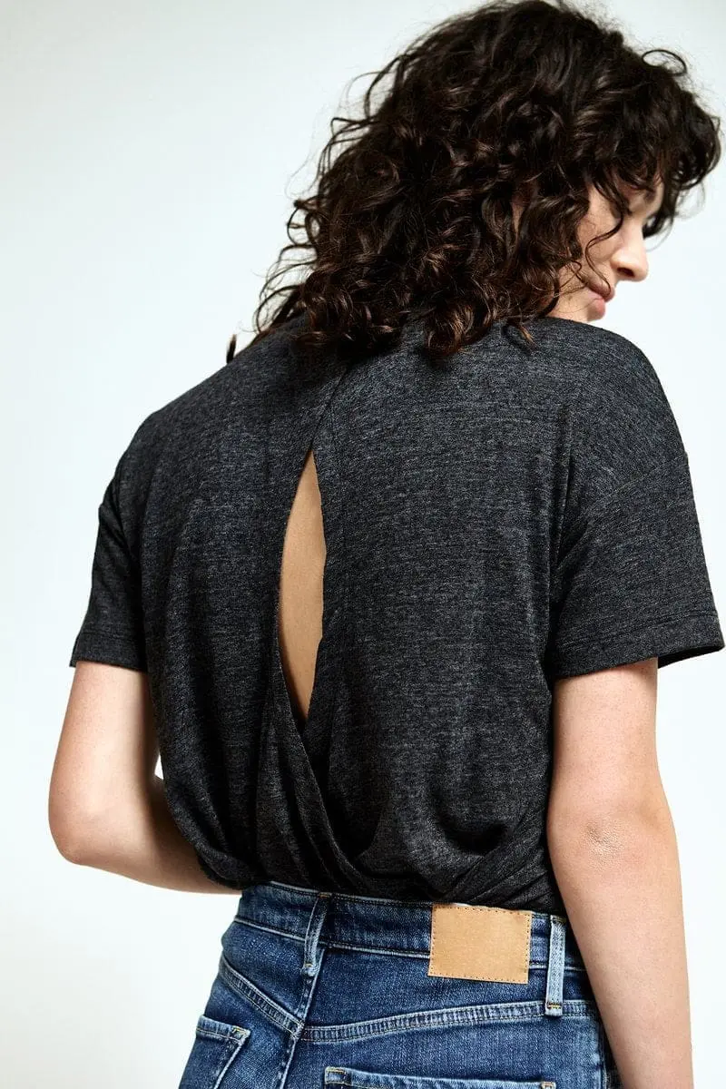 Dit hennep topje met open rug en korte mouwen is gemaakt met meer dan 50% zachte hennep. Een zomer topje die perfect valt door de losse maar flatterende pasvorm.