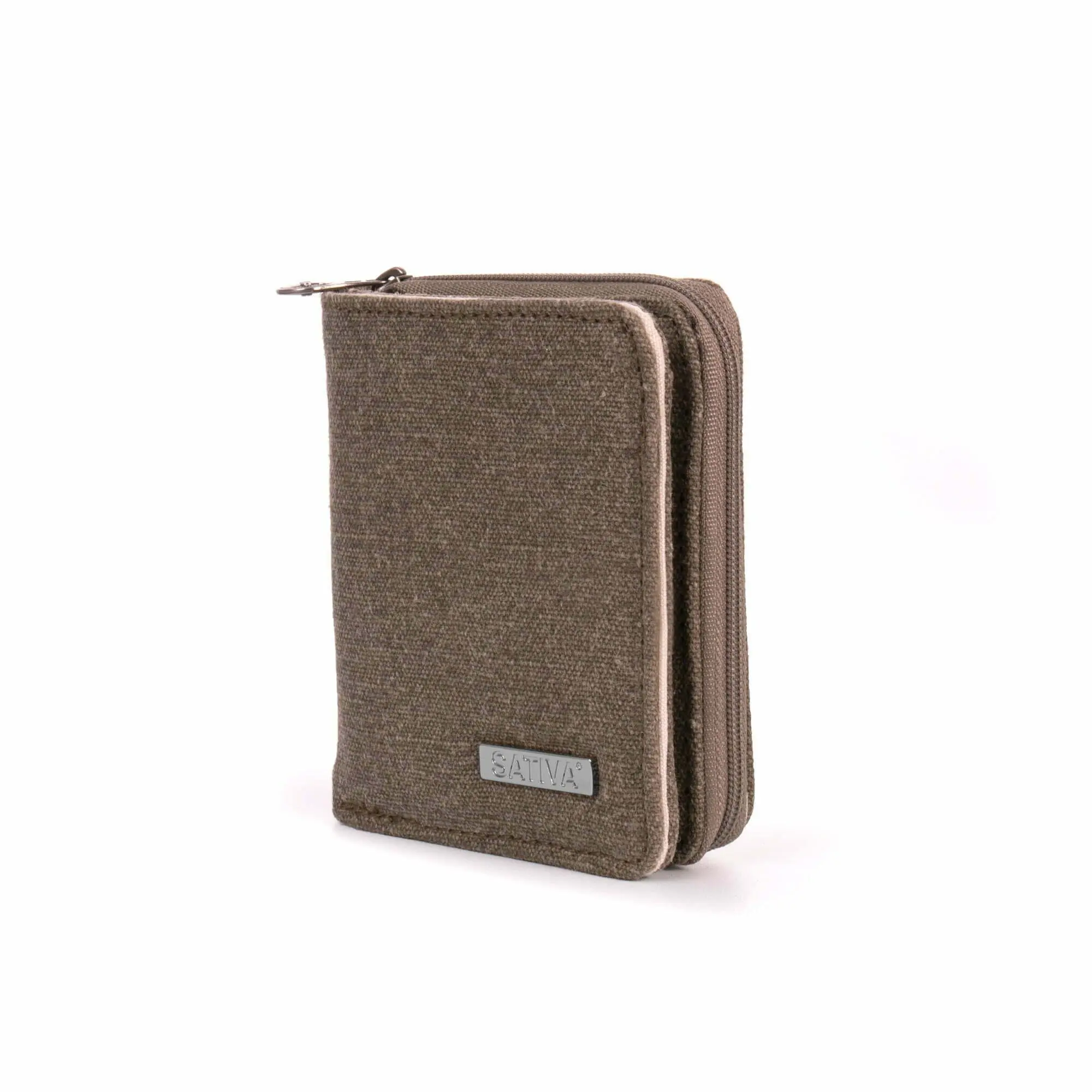 Deze Hennep Portemonnee Khaki van Sativa Bags is niet alleen stylisch en eco-friendly, maar bovendien ook erg praktisch. De mix van duurzame hennep 55% en biologische katoen 45% maakt het materiaal robuust en sterk. Er is plek voor maar liefst 5 creditcards en muntgeld kan veilig opgeborgen worden in een extra vakje met ritssluiting. Aan uw pasfoto’s is ook gedacht dankzij een transparant vakje.