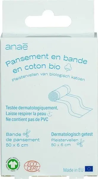 Deze biologische pleisters van het Franse merk Anae zijn gemaakt van biokatoen. In de verpakking, die gemaakt is van recyclebaar karton, vind je een rol die je zelf op maat kan knippen. Wel zo duurzaam, zo is je pleister nooit te groot en heb je altijd een pleister in huis die past! Deze ecologische pleisters van biologisch katoen op rol zijn dermatologisch getest en laten de huid ademen.