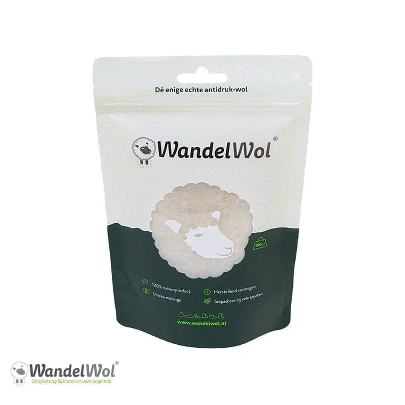 Het antidruk-product van WandelWol bestaat uit een hybride melange van 100% schapenwol; zonder chemische toevoegingen of bewerkingen. Het materiaal is zacht, bevat lanoline (wolvet) en geeft u het gevoel te lopen op wolken. Wandelwol Anti-druk Wol is door de extreem goede werking een begrip bij wandelaars en (medisch) pedicures in heel Nederland en België. Het product is in de praktijk getest sinds 2016. In de loop der jaren is WandelWol steeds verder doorontwikkeld en is het product voor veel mensen niet meer weg te denken. Wandelwol Anti-druk Wol is verkrijgbaar in 10 gram, 20 gram of 40 gram verpakking.
