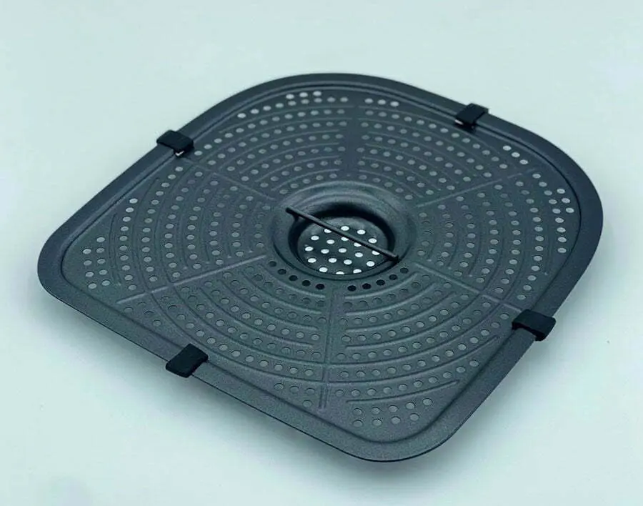 • De Airfryer MF-465 3XL heeft geen mandje maar een keramische inlegplaat